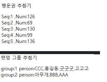 - 자바스크립트로 행운권 추출기를 구현하였다. 조금만 응용하면 로또번호 추출기도 가능하다.